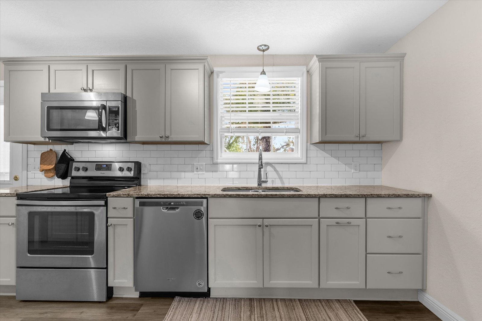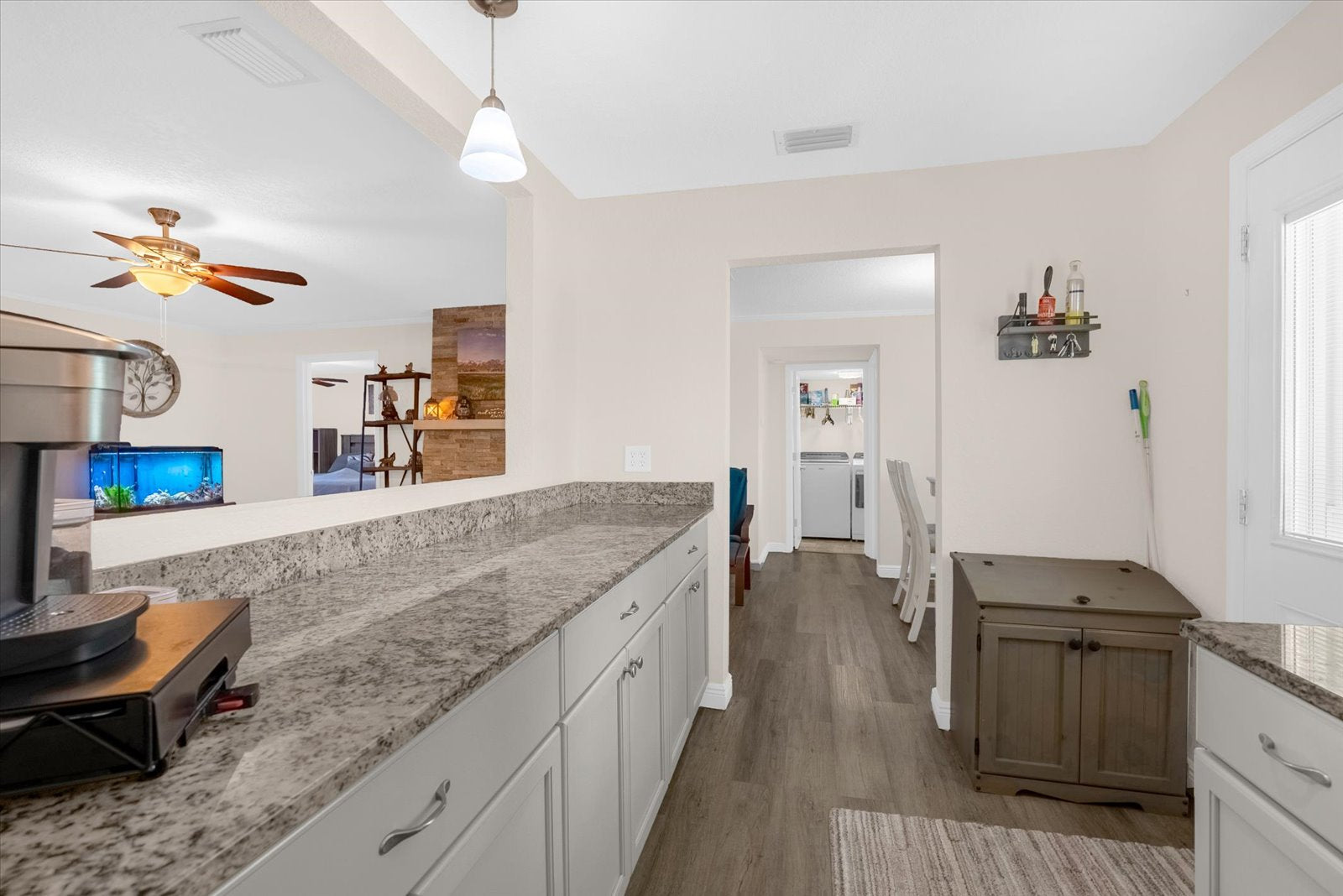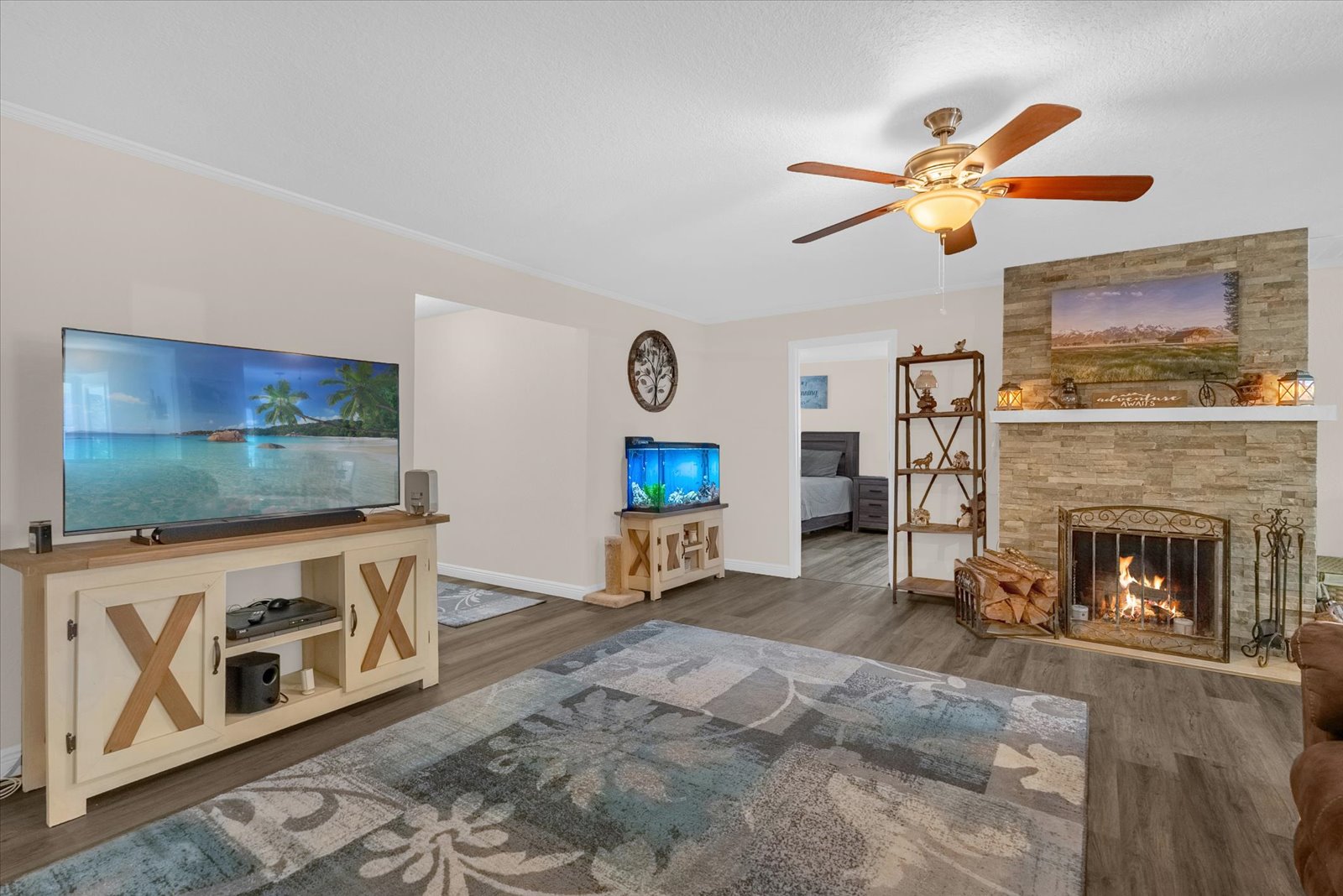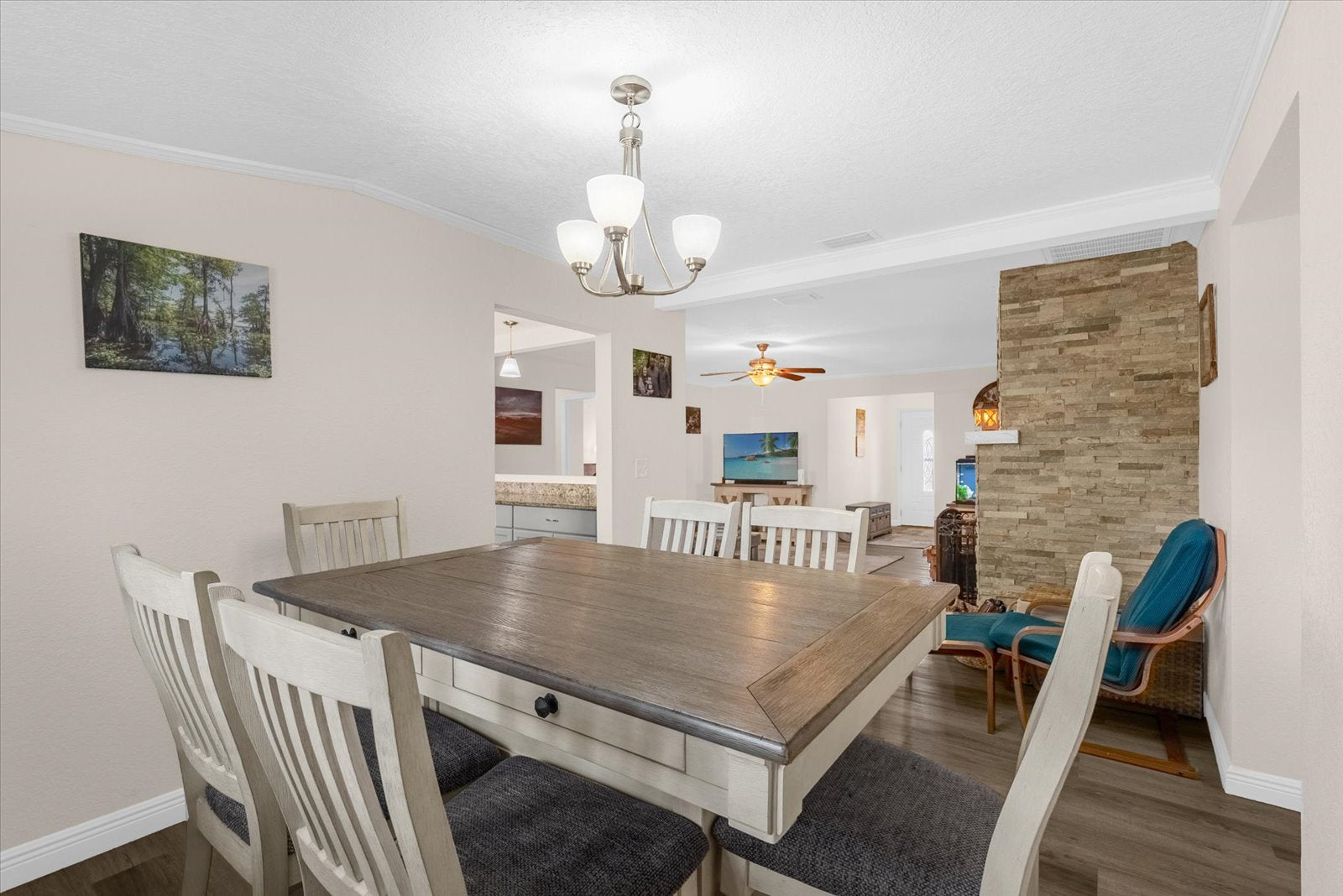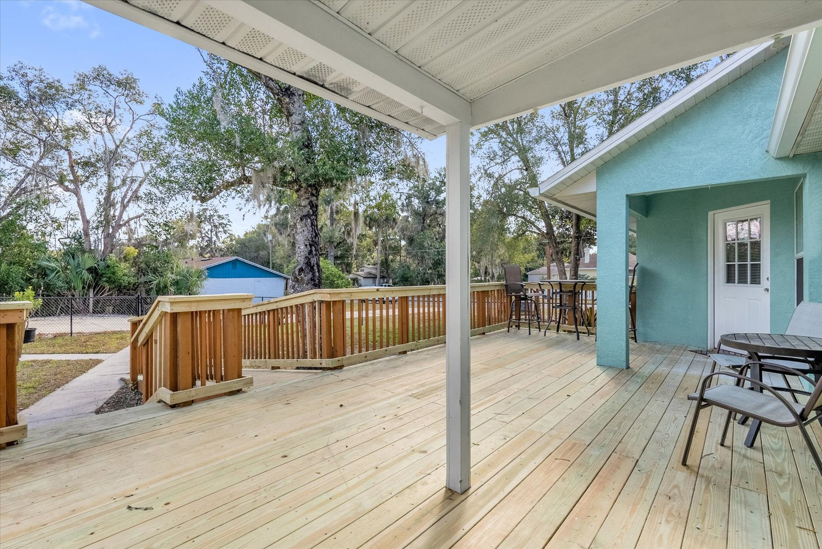 This versatile three-bedroom, three-bath home offers a unique layout, updated interior, and endless potential. The open-concept living space creates an inviting flow that’s perfect for entertaining, while the updated interior feels bright, functional, and easy to live in. An indoor laundry room adds everyday convenience and practicality. The flexible third bedroom includes its own living space and private entrance, making it ideal for an in-law suite, guest quarters, or potential rental opportunity. Situated on a generous corner lot, the property also features a detached garage that could easily be transformed into a workshop, studio, gym, or additional storage. Recent updates include a brand-new water heater (2026) and a roof replaced in 2023, offering peace of mind for the next owner. Step outside to the peaceful back deck overlooking the expansive yard; the perfect place to enjoy Florida’s beautiful weather, watch birds, or unwind at the end of the day. Inside, a cozy wood-burning fireplace adds warmth and charm during those cooler Florida evenings. With flexibility, functionality, and space to entertain or expand, this home is an excellent opportunity for a variety of lifestyles.